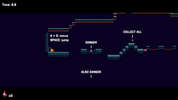 - Reach the ending without falling off, hitting the spikes or getting shot with a fireball